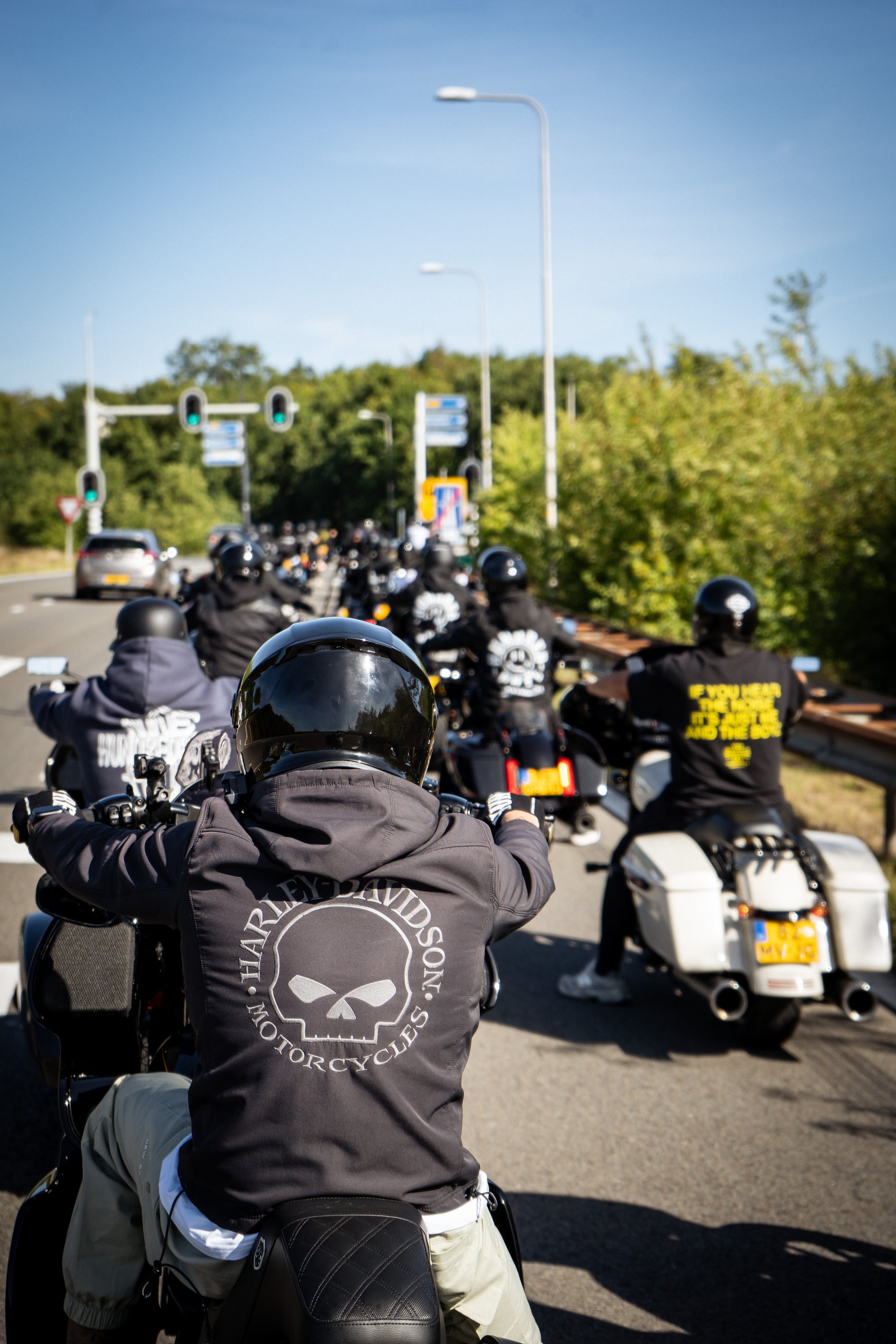 Geen geposeerde beelden, maar pure actie. Jullie, de motoren, en de weg die voorbijkomt.